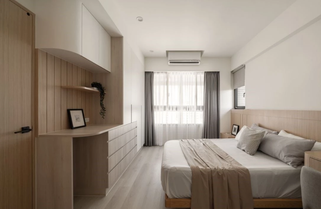 主卧除了需要预留婴儿床空间,需要父母照顾宝宝,初为父母的往往要在半夜更换尿布和使用暖奶器。因此,除了衣柜的设计外,主卧室还可以增加一个换尿布的平台和充足的电源插座,深夜孩子哭闹时,可以马上起床处理,增加自己和另一半的休息时间。