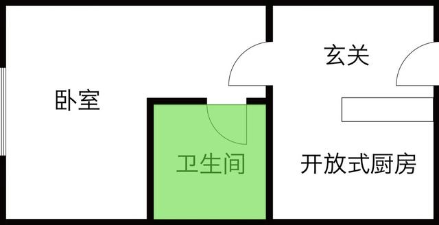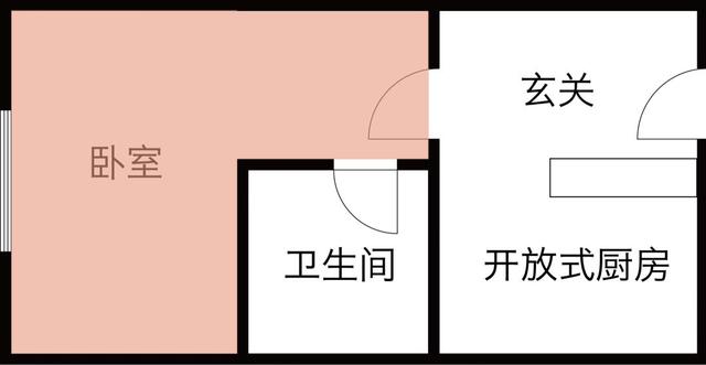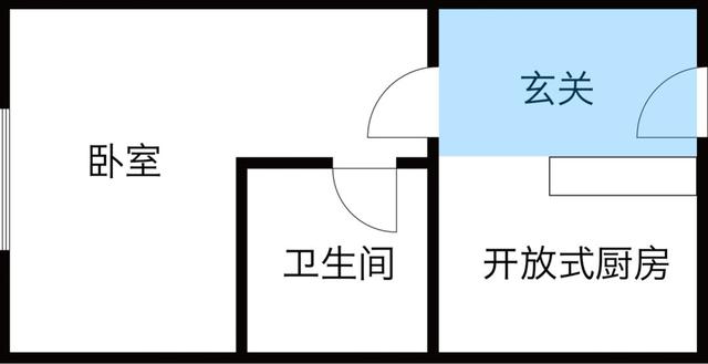 进门左手边是开放式厨房,右手边是过道,合起来算个小厅。