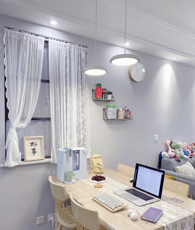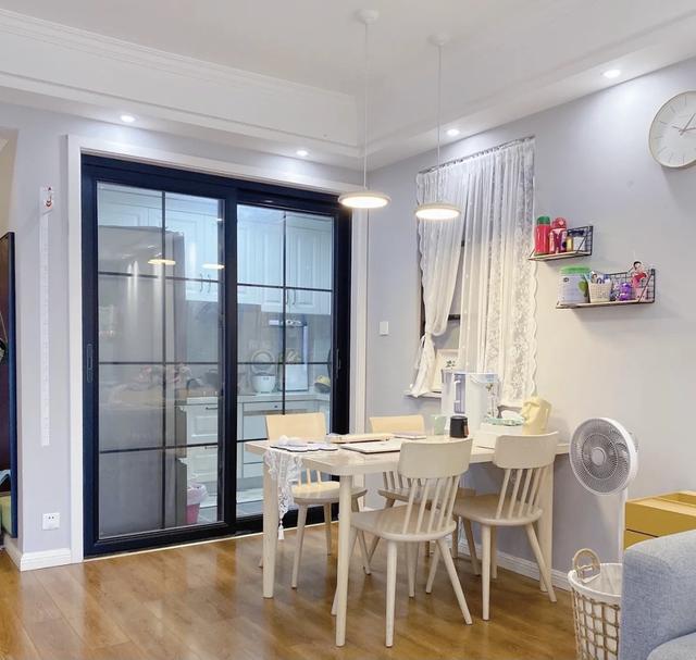 开头说过,她家是客餐厅一体20平米,吊顶也是一体式吊顶,所以整个客餐厅空间显得更加开阔