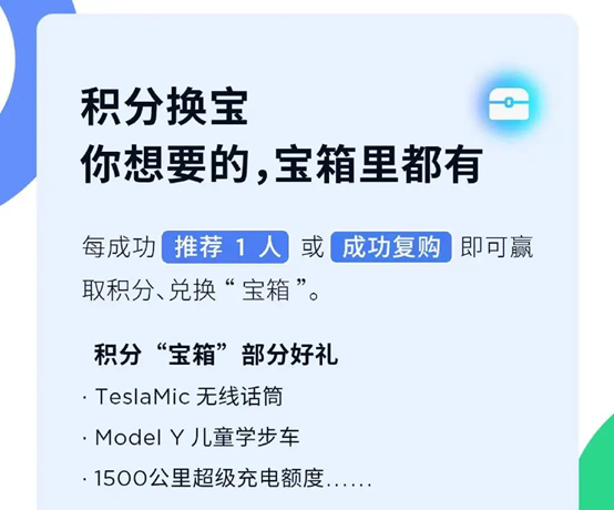 随着价格调整的通知的发布,特斯拉也推出了不少奖励机制推动存量车主“以老带新”。值得一提的是,赢取积分的基础上,每成功推荐5人或推荐20人的车主(含复购),有机会抽取特斯拉季度/年度宝箱。奖励包括上海超级工厂VIP游、50000公里超级充电额度 12个月、Model3/Y后轮驱动版使用权、完全自动驾驶能力(FSD)24个月使用权等。由此可见,特斯拉想要趁着降价的机会冲销量的想法也是特别的明显。