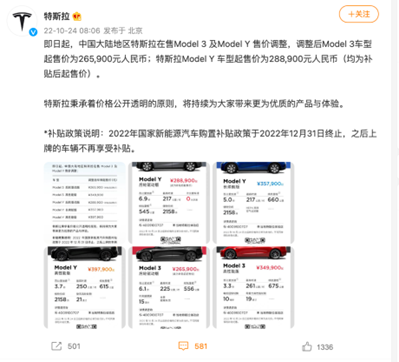 10月24日是一年一度的“程序员节”,在这样一个特殊的日子里,程序员出身的马斯克却“做了”一件令不少特斯拉车主“颇有微词”的事情。当天上午8点06分,特斯拉通过微博发布消息称,他们要对中国大陆地区在售的Model 3和Model Y调整售价,在调整后,Model 3和Model Y的补贴后起售价分别是26.59万和28.89万。换言之,经过这次价格调整,Model 3最高降幅达到了1.8万,Model Y最高降幅达到了3.7万。对于不少在近些天下单购车的准车主们来说,他们确实有种自己被“割了韭菜”的感觉。