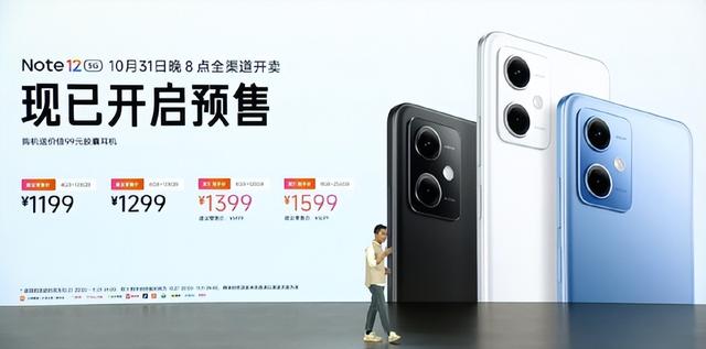 Redmi Note 12 5G,120Hz OLED屏幕,5000mAh电池,骁龙4,4800万像素主摄等,4GB+128GB售价1199元,6GB+128GB售价1299元,8GB+128GB售价1399元,8GB+256GB售价1599元,10月31日20点开售,现在已开始预售。