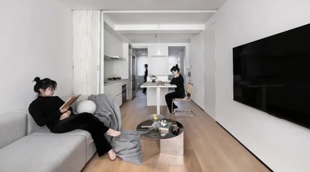 虽然是开放式厨房,但配备了大吸力油烟机,与客厅之间还设计了隐形折叠门,可以完美分隔有限的空间,分区域利用。