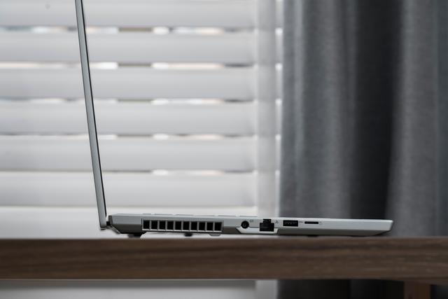机身左侧是电源口、2.5G网口,MicroSD Express 7.1读卡器(985MB/s)、USB-A 3.2 Gen 1和MicroSD读卡器;右侧是USB-A 3.2 Gen 2、USB-C 3.2 Gen 2、雷电4(C口和雷电4均支持PD充电和DP视频输出)、HDMI 2.1口(支持8K 60Hz或4K 120Hz输出)、3.5mm音频口。日常使用、设备扩展、PD充电、高速传输全部搞定,没有短板。但是有个小细节可以挑剔一下,因为机身的左右侧、尾部均有出风口,所以导致左侧的电源接口位置有些靠前。
