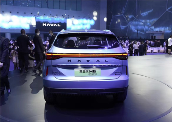 首先看到前脸,哈弗H6新能源版本相对于普通版本前脸要明显更加精致。前脸采用类似于无边框的大尺寸中网,同时还有横向的镀铬装饰,看上去很宽,视觉效果确实是很不错。另外,车标也变为蓝色,突出身份。尾部与普通版本很相似,贯穿式的LED尾灯点亮之后很漂亮,同时整体视觉高度很高,符合SUV的定位。