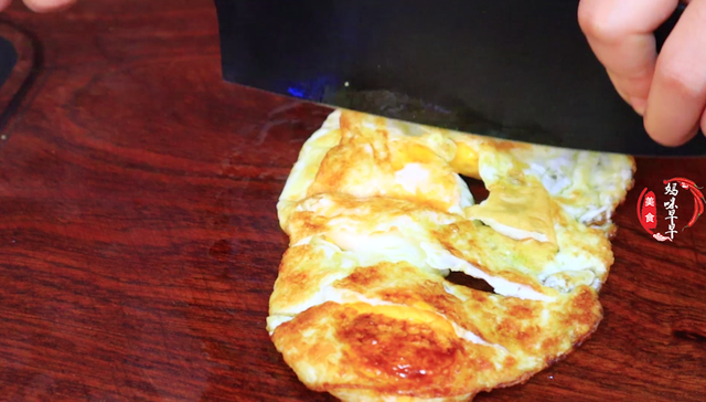 2、小碗里面打入3个鸡蛋,如果条件好的话,多打几个也无所谓,不粘锅里倒入适量油,油热之后倒入鸡蛋,先把底部给它煎至定型,然后把鸡蛋翻面,一直煎到两面金黄就可以了,放到案板上切成小块备用。