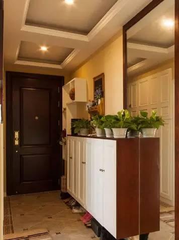 仔细看看玄关的装修细节令人惊喜,超大尺寸的鞋柜和墙面展示柜,很巧妙地将收纳与装饰结合起来。