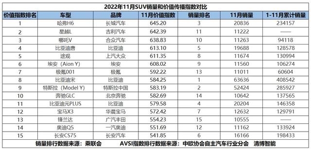 综合11月哈弗H6销量排行第三,以及AVSI榜排行第一的表现来看,这款车在10月份上市的几款燃油车和新能源车,以差异化的表现确实还是赢得了不少消费者的关注,也正是因为如此,才让哈弗H6在11月SUV价值传播指数排行中升到了第一的位置。