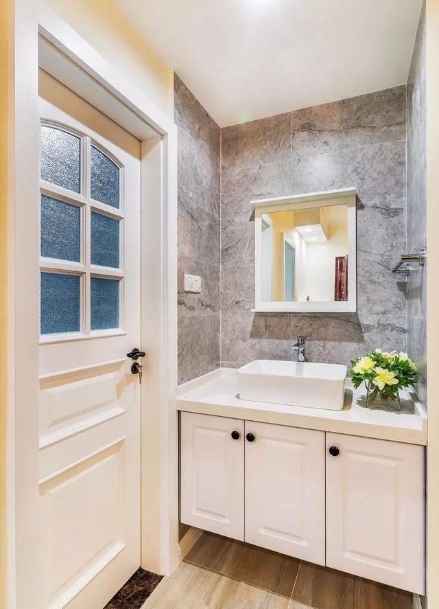 卫生间干湿分区,洗手台放在了门外,早起洗漱的时候就更加方便许多。