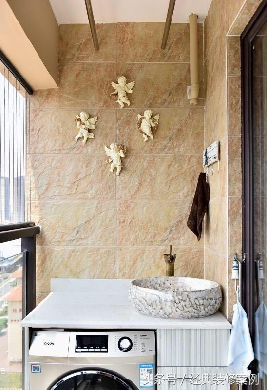 阳台作为晾晒衣服的地方,设计了洗衣台,将洗衣机嵌入其中,美观又实用。