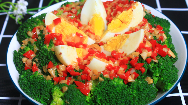 主要食材:西兰花、鸡蛋、大蒜、红甜椒