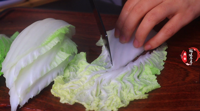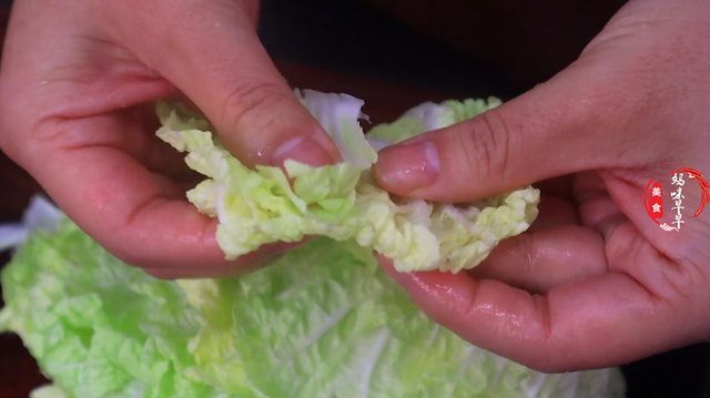4、白菜叶子别用刀切,用手撕的方式,这样会更加的入味。