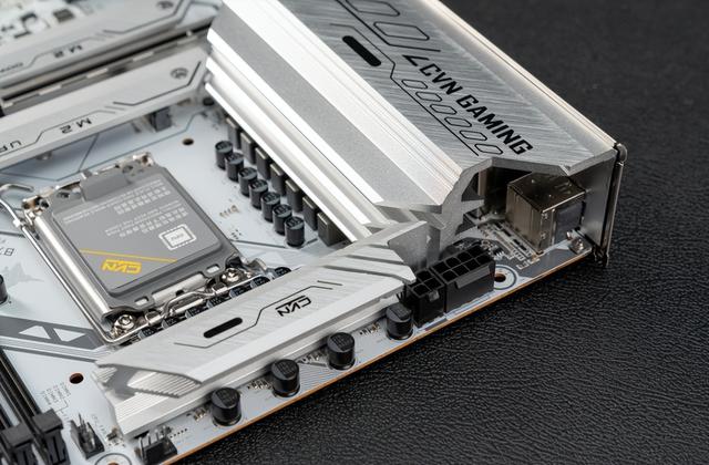 俗话说“外观就是战斗力”,近期各家主板在外观设计上都花了不少的心思,潮牌风、二次元风……各有特点。而七彩虹CVN系列主板则一直走的时候冷峻硬派的设计科幻风格,银白配色的外观是其标志性的设计。作为该系列的最新一员,七彩虹CVN B760M战列舰自然延续了家族式的设计风格,并在细节上进行了改进。