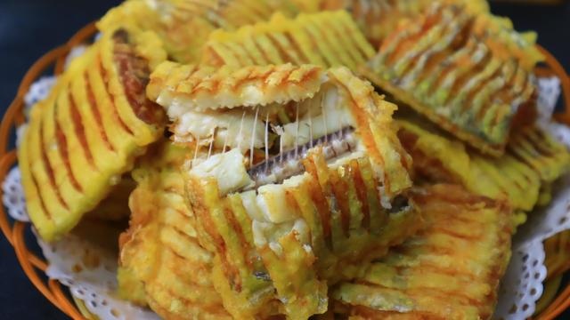 这样一道好吃的干炸带鱼就做好了,金黄酥脆,肉嫩鲜美,,即便放凉了带鱼也不会软,喜欢的朋友可以试试!
