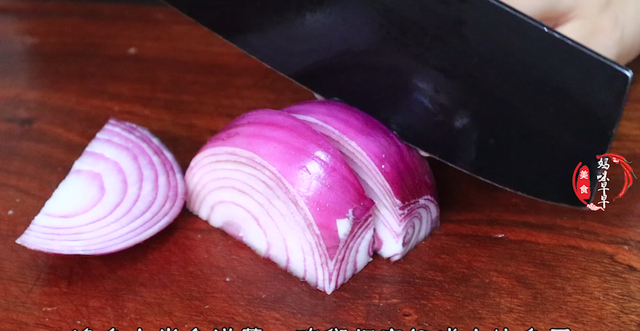 4、准备上半个洋葱,咱们把它切成小块备用,切好之后,把洋葱掰开,然后放入碗中备用。
