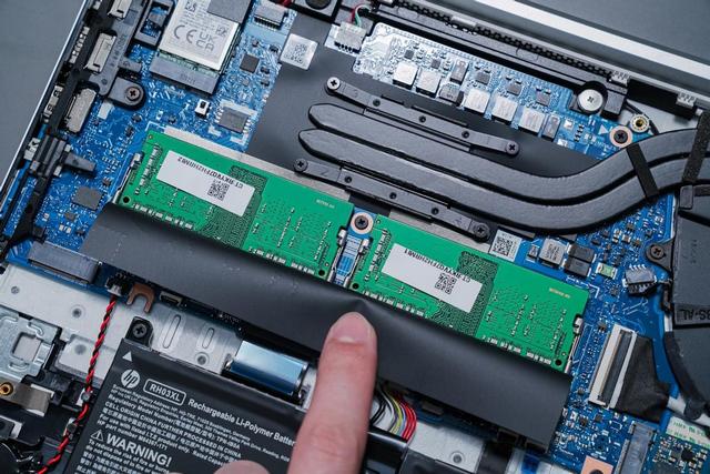 ▲内存为插槽设计,后续可替换升级,后续如果有视频剪辑、仿真计算、跑虚拟机之类的应用,可以增加内存以提升笔记本的使用周期。如果有大容量存储的需求,战66六代锐龙版还提供了扩展第二块SSD插槽(在电池左侧)。