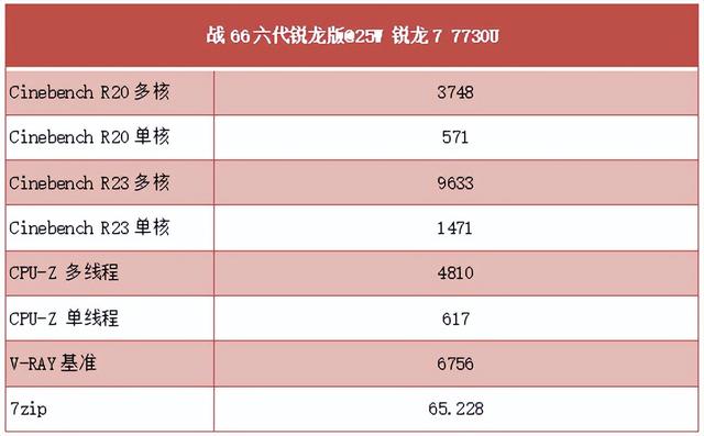战66六代锐龙版搭载的锐龙7 7730U比较强力,在大家熟悉的Cinebench R20多核中,其多核测试成绩为3748pts,在Cinebench R23多核中测试中,多核成绩达到了9633pts。这是一个什么层次的水平呢?一般来说,轻薄本上6核12线程锐龙H处理器也就跑3300/8500左右,显然该机的表现超过了后者。这也意味着所有的日常应用,包括上网看视频、office办公应用、编程、Ps图片处理等等都可以轻松搞定,短时间的高负载应用也可偶尔胜任,比如短视频剪辑,学习3D渲染等等。
