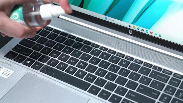 ▲键盘防泼溅设计,能够防止小水滴侵入机身。针对这款新机,牛叔也带小水滴来演示一下。测评的是15.6英寸款,带有数字小键盘。(动图:喷水)
