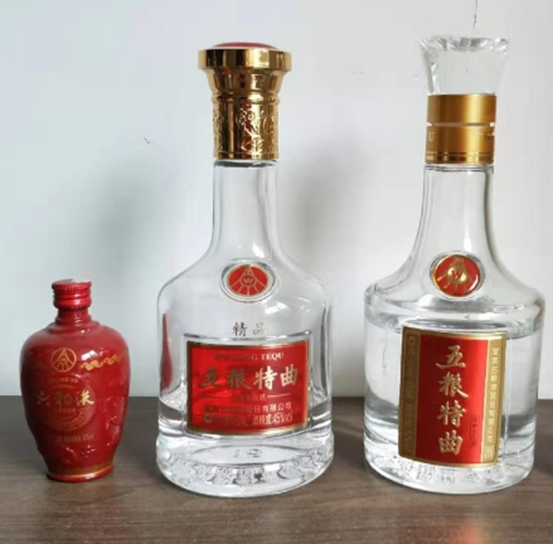 之后再往瓶子里装上五粮液的酒液,包装好即可上市。