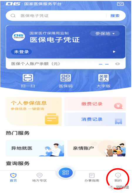 2.点击右下角“我的”页面,进行“注册”(已激活医保电子凭证居民可直接在“电子凭证登录”界面进行登录)
