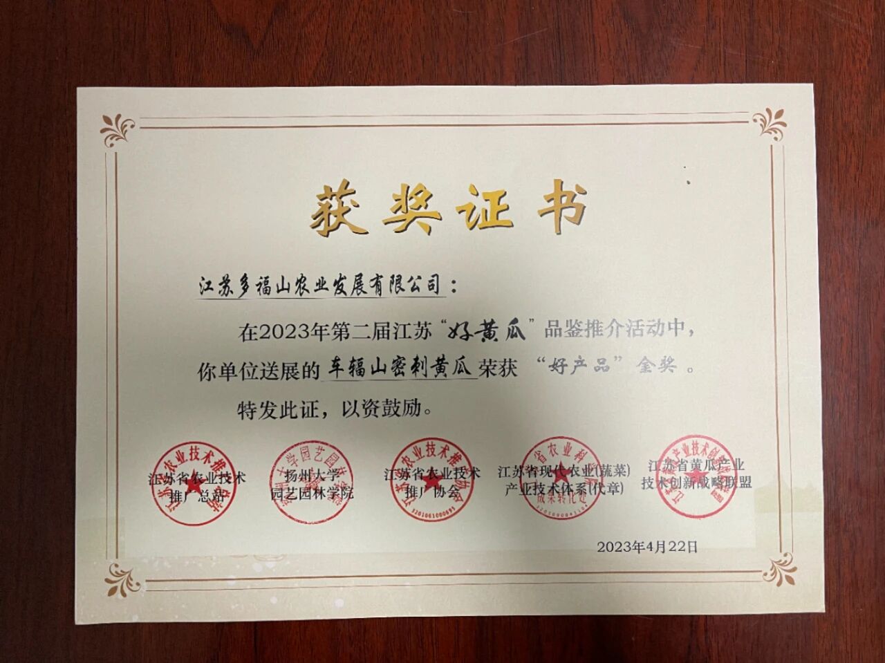 据悉,2021年第一届江苏“好黄瓜”品鉴推介会邳州市选送样产品“德瑞特”黄瓜获“好产品”银奖,