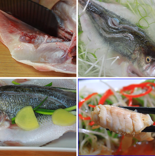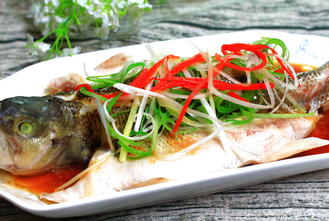 主要食材:鲈鱼、葱丝、姜丝、红椒丝