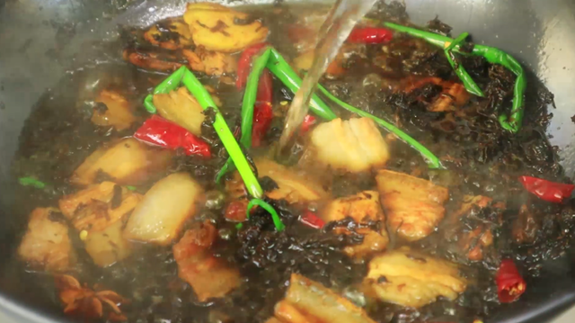 主要食材:五花肉、梅菜、葱姜、干红椒、八角