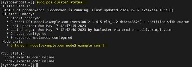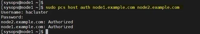 使用 pcs命令对两个节点进行身份验证,从任何节点运行以下命令。在我的例子中,我在node1上运行它: