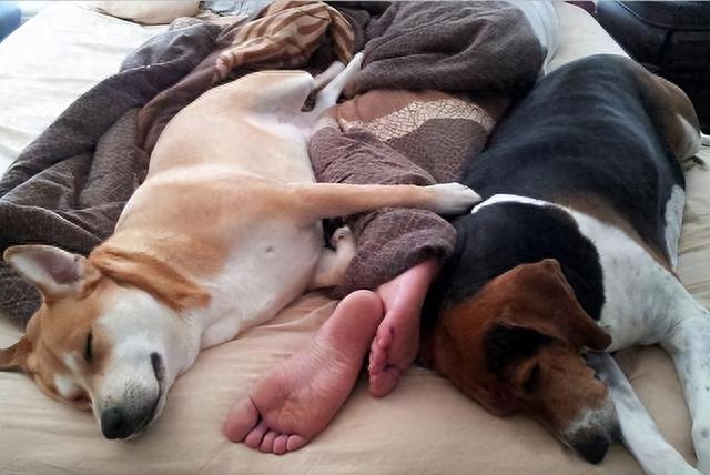 而狗狗觉得主人在睡觉的时候实在是睡太死了,怕你遇到危险就嘎了。于是睡在你旁边来保护你的安危,遇到危险就及时叫醒你,真的太暖心啦。