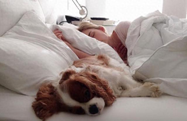 有时候,狗狗睡在主人的床上也可能是因为它们身体出现了不舒服,这时候它们会变得非常脆弱,需要主人在旁边陪伴才能更加安心的睡着。