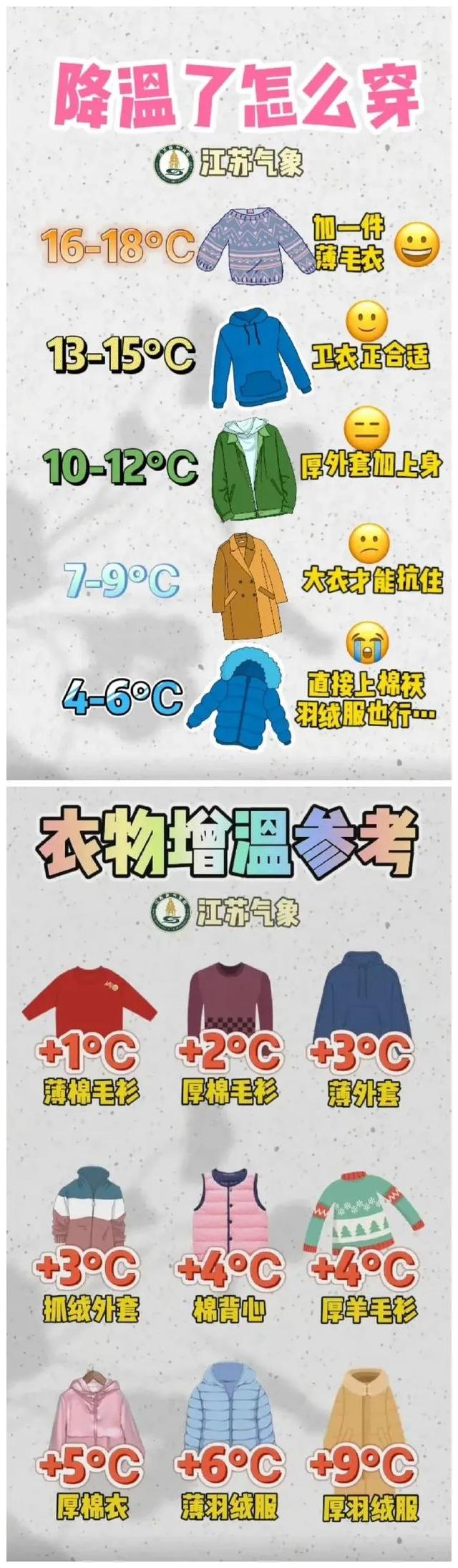 近日,天气转寒,降温了应该如何科学增加衣物?一件衣服大概可以为你增温几度?小编有份《秋冬最强穿衣参照表》供大家参考。