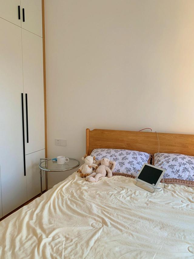 与主卧相比,次卧的设计更简单。天花板和墙壁用白色乳胶漆粉刷,没有使用线板或天花板。毕竟内部空间有限,所以简单的装修可以减少抽筋的感觉。
