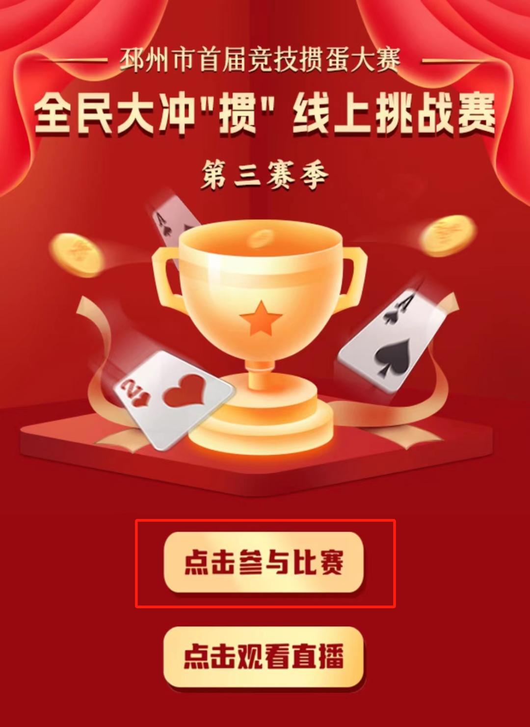 进入掼蛋电竞精英赛邳州海选赛房间参与比赛,每月的前16名晋级总决赛,参与次月举办的总决赛;