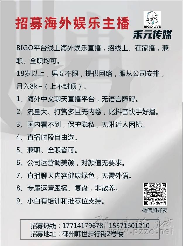 bigo平台线上,娱乐直播 招线上、在家播 兼职全职均可。