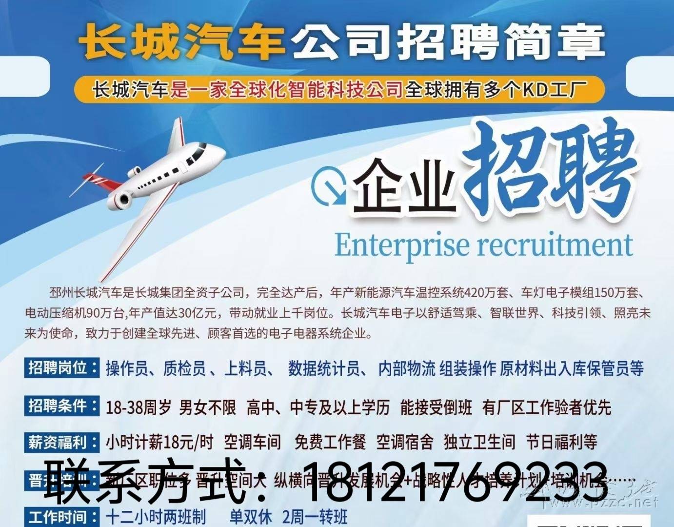 长城汽车招聘(普工 质检 仓储)男女不限 上六休一