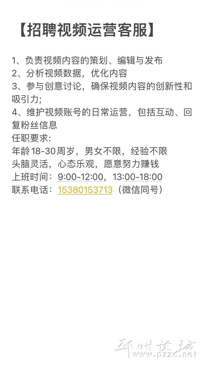 招聘视频运营,有无经验均可,入职培训,9:00上班