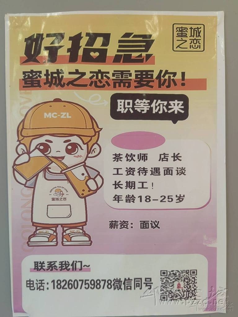 蜜城之恋锦江广场店,招聘茶饮师,店长,工资待遇面谈,年龄16以上,有意者请与本店联系。18260759878微信同步