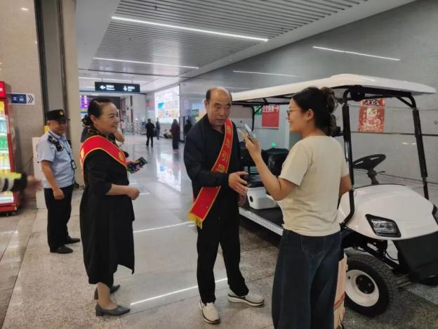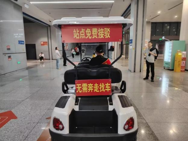 志愿发力,注入出行暖力量。节日期间,邳州市交通运输局联动出租车公司,构建“站点服务+接驳引导”志愿体系。在高铁站地下出站口,由出租车公司组建的志愿服务队专人值守,身着统一标识服装,为旅客提供“零距离”引导服务:主动帮携带大件行李、行动不便的旅客提拿物品,耐心讲解出租车候客区位置与乘车流程;针对客流集中时段,同步开通免费接驳电瓶车,将旅客从地下出站口直达出租车候客点,彻底解决“出站找车难、携带行李累”的问题。