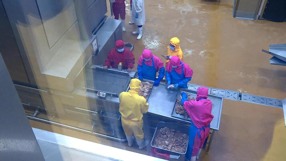 徐州润客调熟车间生产经理罗磊介绍:“车间于今年5月正式投产,设计年产能36000吨。凭借优质产品,我们已与百盛、塔斯汀、米村拌饭等知名品牌建立稳定合作,首批产品通过测试后正持续稳定供应。”