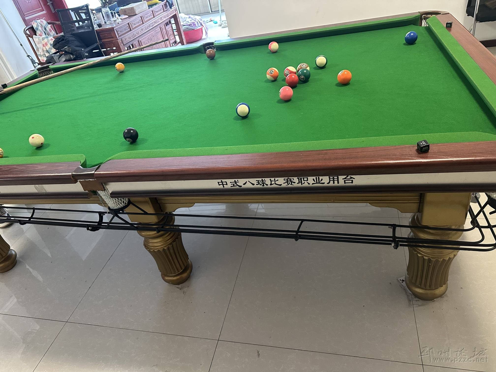标题: 台球桌出售,桌布才换不久,很好用,带台球灯,买好还没装,带球杆,台球,球杆架