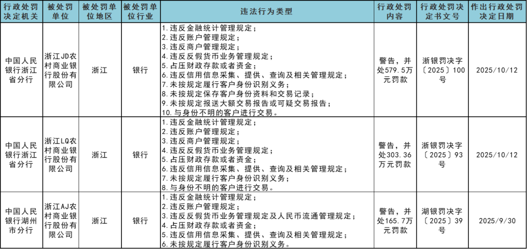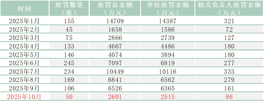 10月罚单中,百万以上的“大额罚单”共计5笔。从地区分布看,本月处罚金额前三名的地区为浙江省、广东省和广西省,三个省级行政区大额罚单处罚金额合计1797万元,占全国总处罚金额的69.07%。2025年 10月处罚金额前三名机构详情表| 欢迎光临 邳州信息网 (https://www.pzxxw.com/) | Powered by Discuz! X3.4 |