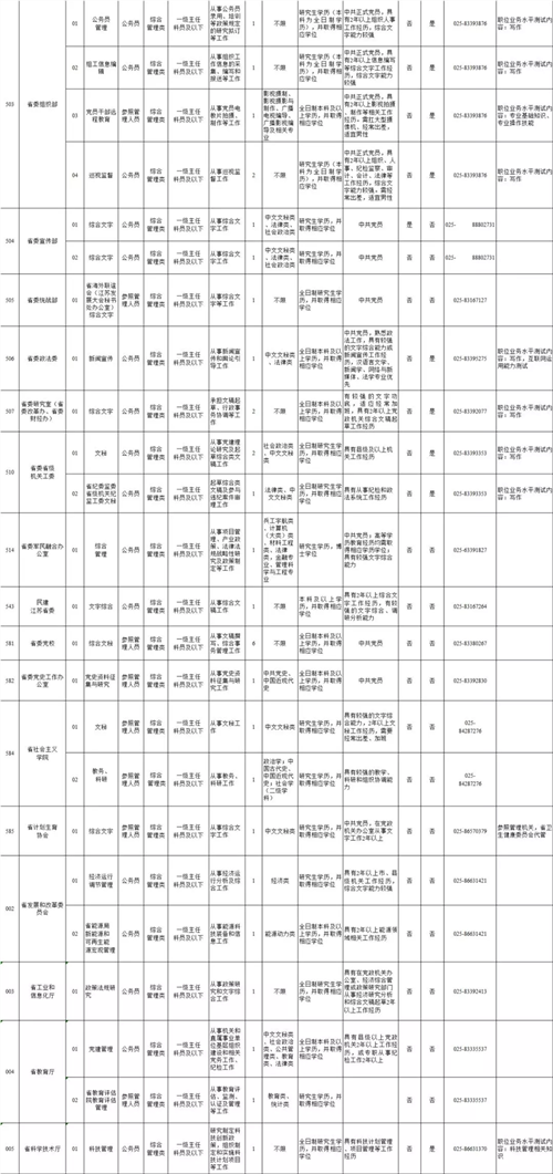 报名范围 此次遴选职位为省级机关内设机构或直属单位一级主任科员以下职级的职位,一类面向符合条件的所有公务员(参照管理人员),一类专门面向符合条件的选调生。 具体包括: 设区市以下机关中已进行登记且在编在岗的公务员; 设区市以下参照公务员法管理机关(单位)中已进行参照登记且在编在岗的人员; 中央和省级机关设在地方的单位(包括垂直管理单位、派出单位等)符合上述条件的人员。 报考人员须具有2年以上基层工作经历和2年以上公务员(参照管理人员)工作经历。其中2015年以后新录用的选调生和乡镇(街道)公务员,在乡镇(街道)机关最低服务年限分别为3年和5年;没有规定的,须在本级机关工作2年以上。 报名时间 报名时间:7月25日至7月30日 资格初审时间为7月25日至8月1日 笔试时间为8月24日上午 9月上旬公布公共科目笔试成绩 面试将于9月下旬举行 公共科目笔试开考比例为1:5,主要测试政策理论水平、分析和解决实际问题的能力、文字表达能力等综合素质,按遴选人数1:3的比例从笔试成绩高分到低分确定面试初步人选。 为进一步提升遴选工作科学性,提高遴选职位与遴选对象的匹配度,遴选公告明确,部分遴选单位经批准可在面试前开展职位业务水平测试,测试人选根据公共科目笔试成绩,按照遴选人数1:5的比例从高分到低分确定;按照公共科目笔试成绩60%和职位业务水平测试成绩40%的权重,合成笔试综合成绩并最终确定面试人选。 面试结束后,按照遴选人数1:2的比例,从高分到低分确定差额考察人选(形不成竞争的职位,实行等额考察)。对于遴选人数在2人以上的职位,可适当降低差额考察比例,但不得低于1:1.5。 最全岗位表